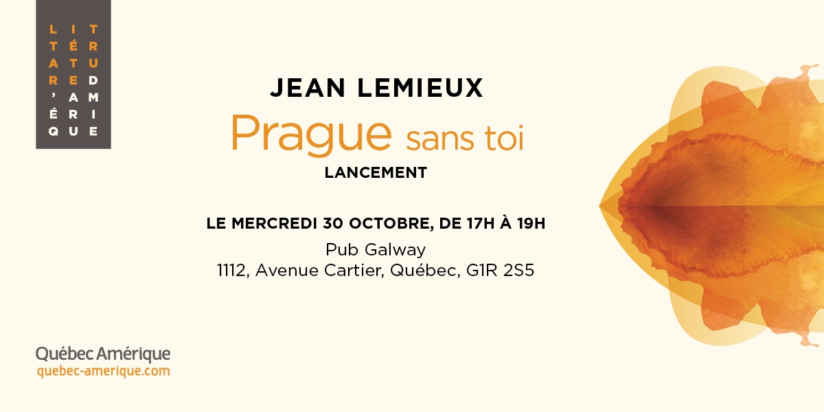 Prague sans toi, mon dernier-né publié chez Québec Amérique, sera officiellement lancé le mercredi 30 octobre prochain, de 17 à 19 heures, au Pub Galway (à l’étage).
