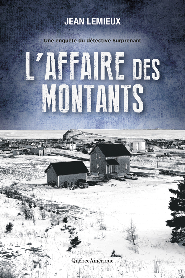 Ci-dessous, la couverture du Surprenant 8, L’Affaire des Montants, sur laquelle est bien identifiable Cap-aux-Meules enneigée. Une partie de l’action s’y déroule, mais le titre fait surtout allusion au chemin des Montants, à Havre-aux-Maisons, où une éleveuse de moutons et son chien ont été tirés à bout portant.